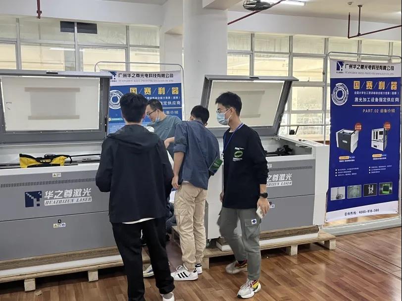 本次大賽采用的是我司研發、生產的,也是目前各大高校與先進制造企業常用的一款精密型非金屬切割雕刻一體機HZZ-V4000作為競賽中“激光加工”競賽環節的指定專用設備之一,我司倍感榮幸,為了完全保障競賽的順利開展,我司還安排了技術人員在比賽現場指導參賽選手正確操作,全力為參賽選手能拿到好成績做服務!
